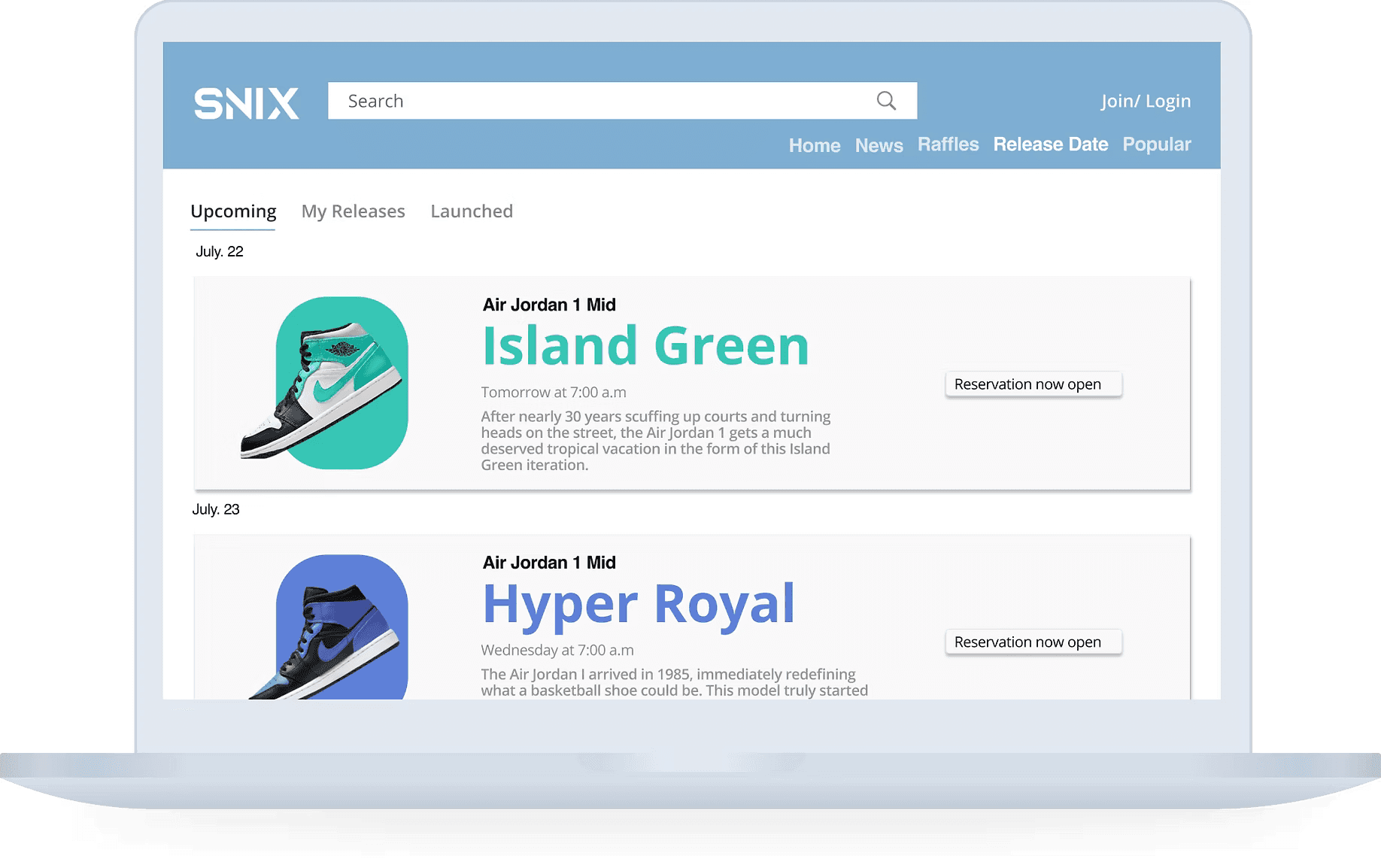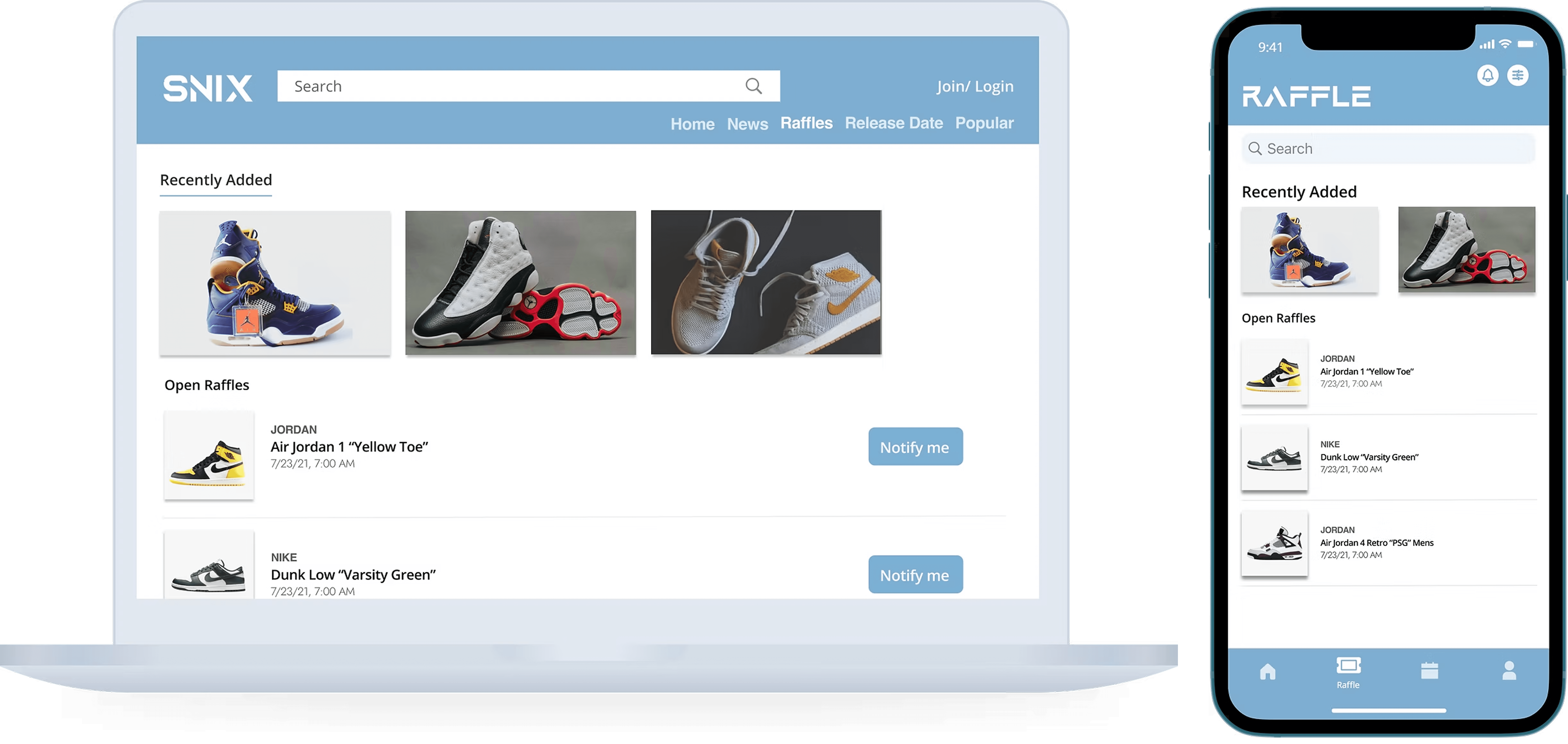 The post-raffle experience. Previously, losing a raffle was a dead end. A notification, a closed door, nothing else. The redesign turned the loss state into an active moment: recommended alternatives surfaced based on style and size, upcoming drops relevant to the user's history, and a direct path to the secondary market for that specific shoe.